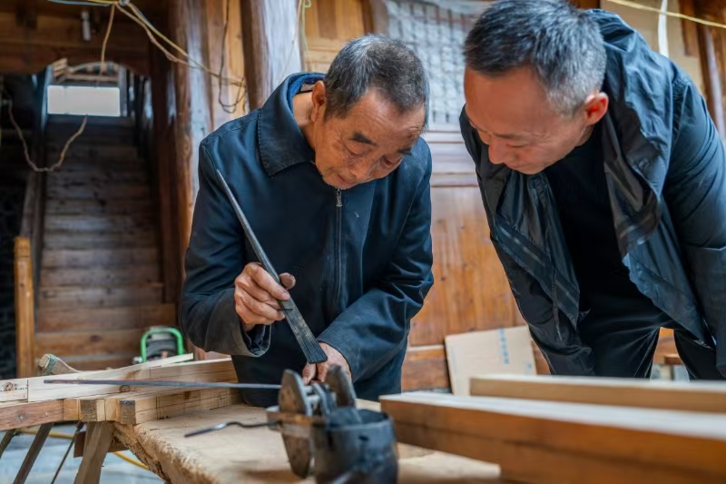 然而,当单一第一次走进河湾村时,眼前的景象让他心凉:西寨40多栋、东寨6栋新建的水泥房如疮疤般矗立在吊脚楼群中,与整体格局格格不入。更让他忧心的是,走访酉水河镇寻找匠人时,发现懂全套技艺的老师傅平均年龄已在70岁左右,年轻工匠几乎无人会建造纯榫卯、无铁钉的传统吊脚楼。