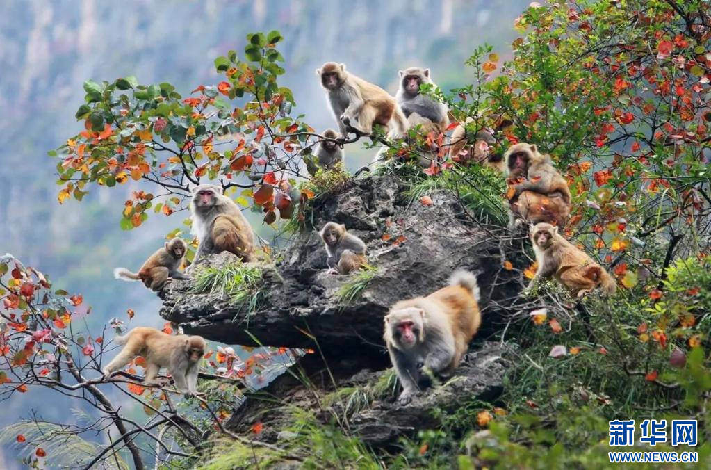 巫山小三峡的野生猕猴。新华网发(巫山县文化和旅游委供图)
