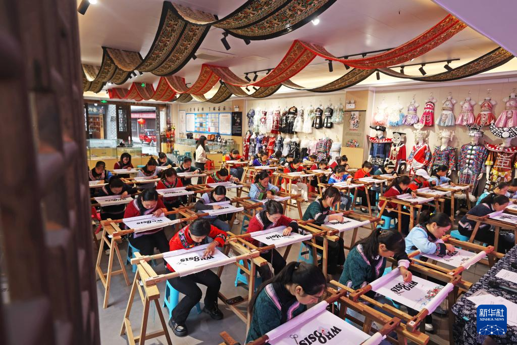 近些年,彭水县依托县职业教育中心,聘请民间匠人为教师,开展非遗技艺体系化教学和研究;同时,在景区设立非遗体验中心、苗绣展示馆等,大力发展非遗研学、苗服旅拍、文创产品开发、技术培训等产业,通过产学研一体保护好、传承好非遗技艺。