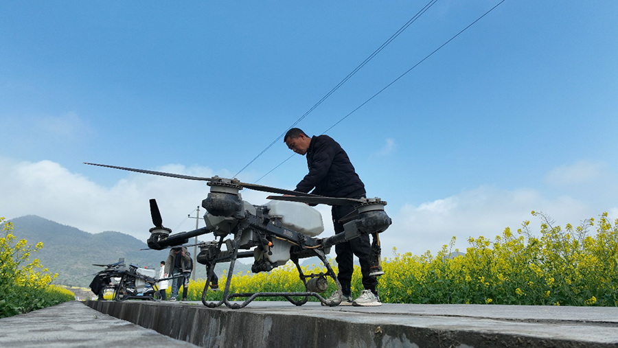 日前,在重庆市秀山县清溪场街道油菜种植基地,种植大户们操作植保无人机开展“一喷多促”田管作业,保障今年油菜稳产增收。近年来,秀山县持续落实惠农政策,大力推广现代化农业设施设备,通过“政策补贴+科技赋能”,推动当地农业生产向规模化、智能化转型。