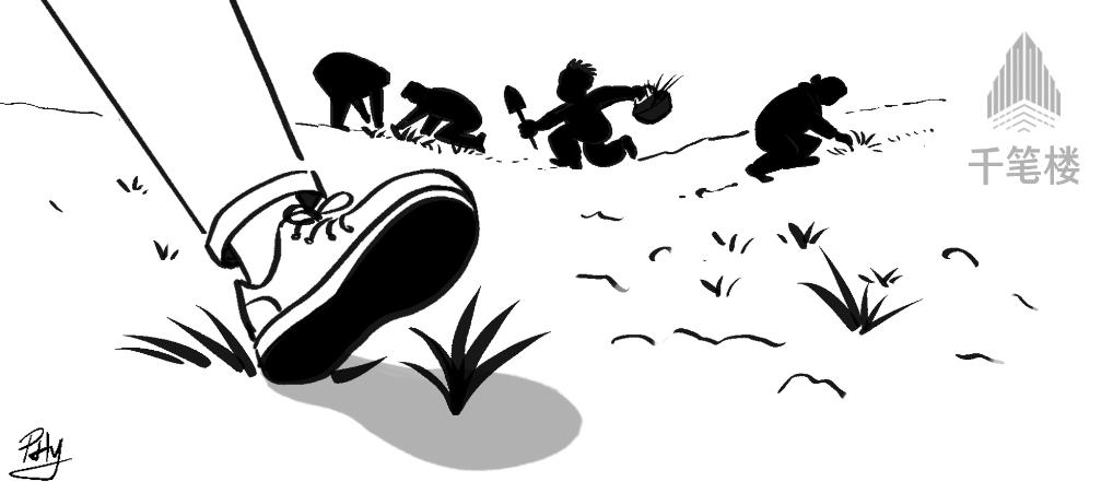 “树上长满大爷大妈”、把春花摘到家里去、风卷残云式挖野菜等不文明行为,都是对春日风景的辜负和践踏。不文明采挖收获的野菜,就算再鲜再香,也透着自私和粗野的味道。